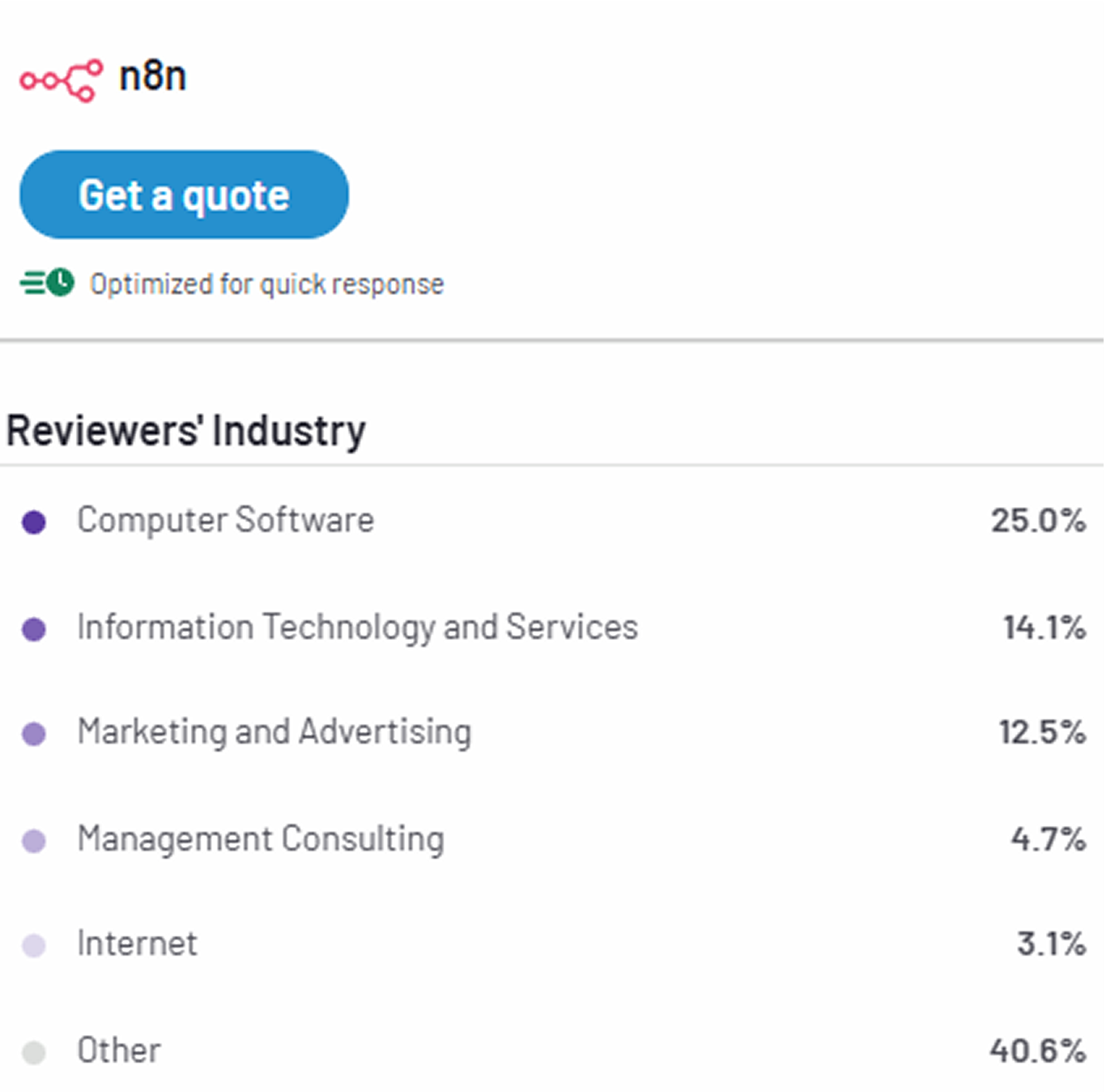 n8n's reviewer industry data shows that 25% of its users come from the computer software sector—highlighting that the platform primarily caters to developers and technically proficient users.